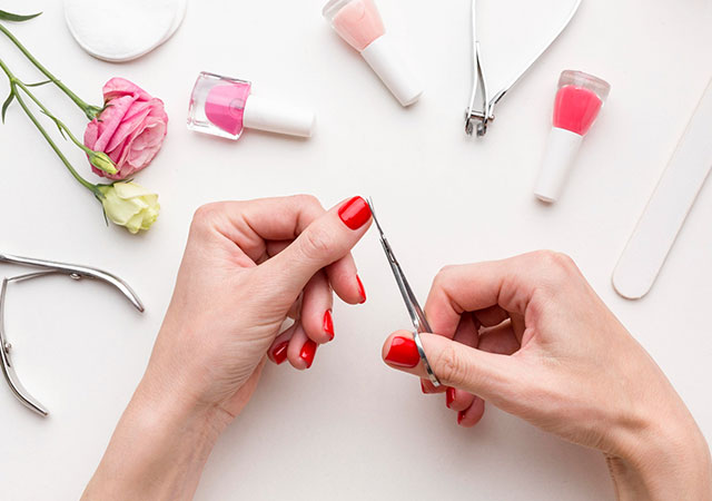 Enjoy a soothing soak, cuticle grooming, nail shaping
