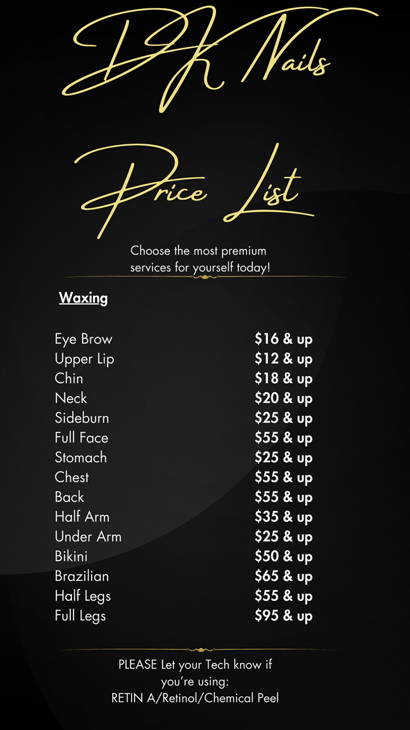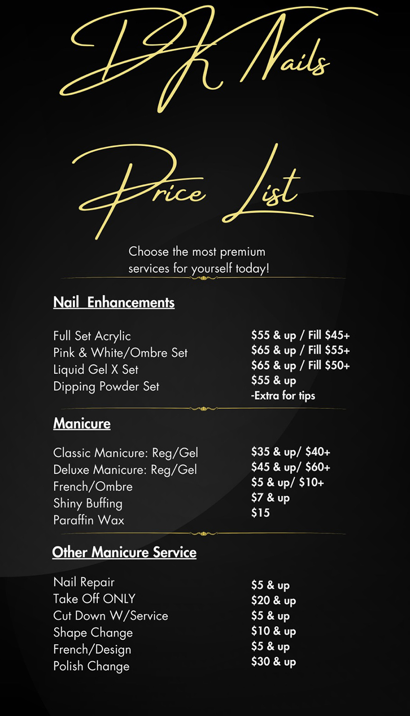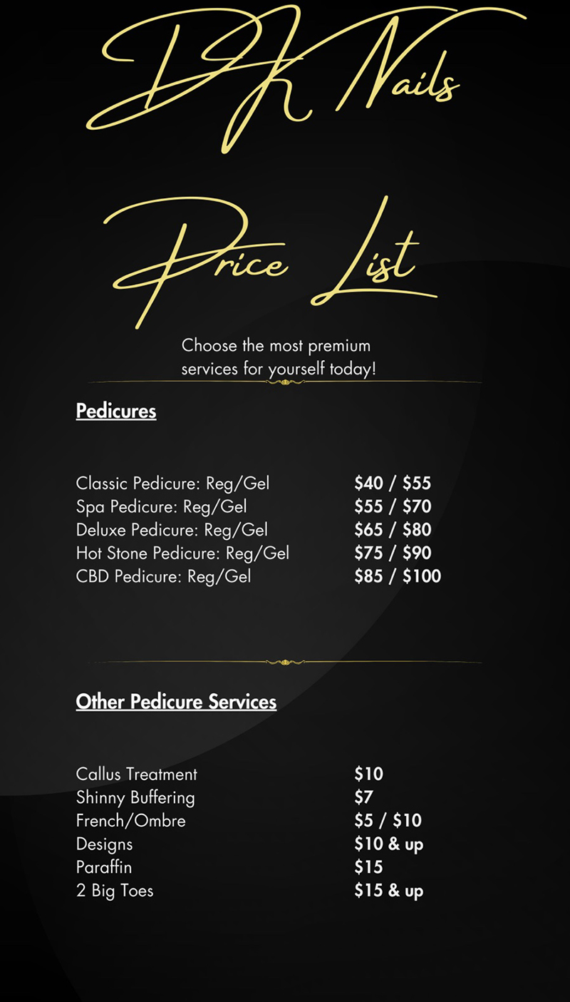 DK Nails offers clients an experience like no other! Our team of expert aestheticians are proficient and talented in a variety of salon and spa treatments, for both men and women regardless of age!.